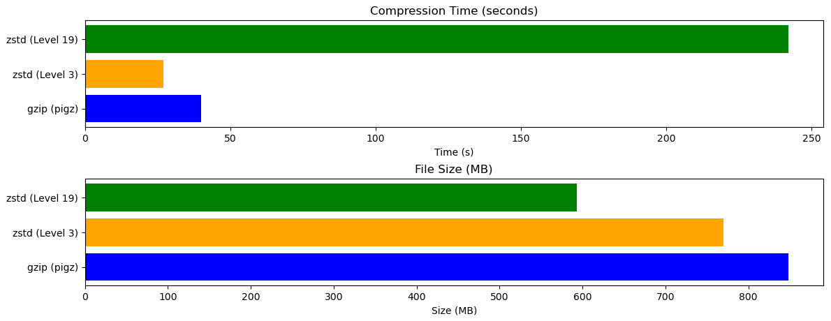 I have a collection of files and folders containing JavaScript, Node.js modules, Python, and C/C++ files from various mini projects. The total size is 3 GB, and while I don’t need them all the time, I still want to archive them for occasional use. I usually use gzip for compression, but I’m currently experimenting with the newer and more efficient zstd compression. In this blog post, I’ll be comparing the compression performance of gzip and zstd.